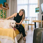 Detta var ett fantastiskt husdjursvänligt hotell med tyst och perfekt läge. Sängarna var bekväma och jag sov gott. Personalen var duktig och rummet var ganska stort. Vi uppskattade det vegetariska köket i restaurangen👌🙂